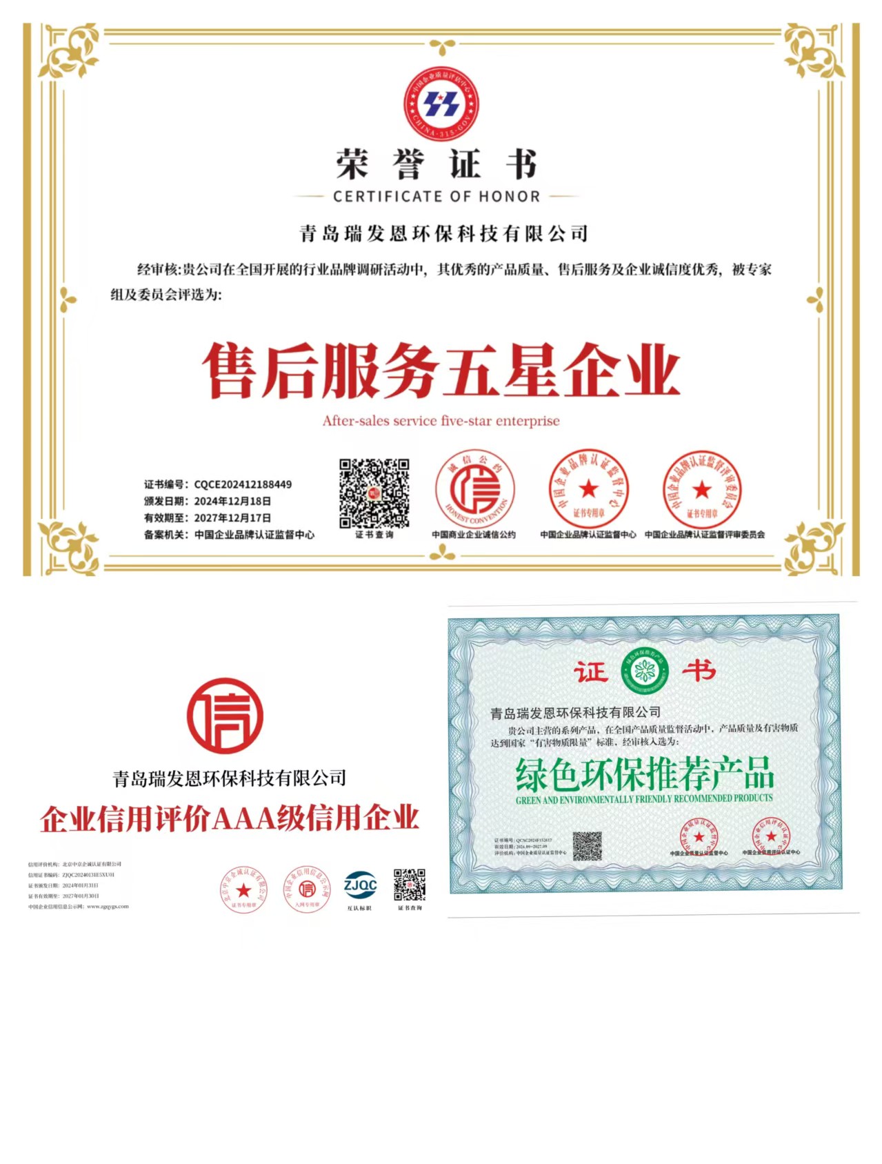 公司已經(jīng)通過環(huán)保,質(zhì)量,安全三項認證,并獲得AAA信用等級認可、綠色環(huán)保推薦產(chǎn)品、售后服務(wù)五星企業(yè)證書。